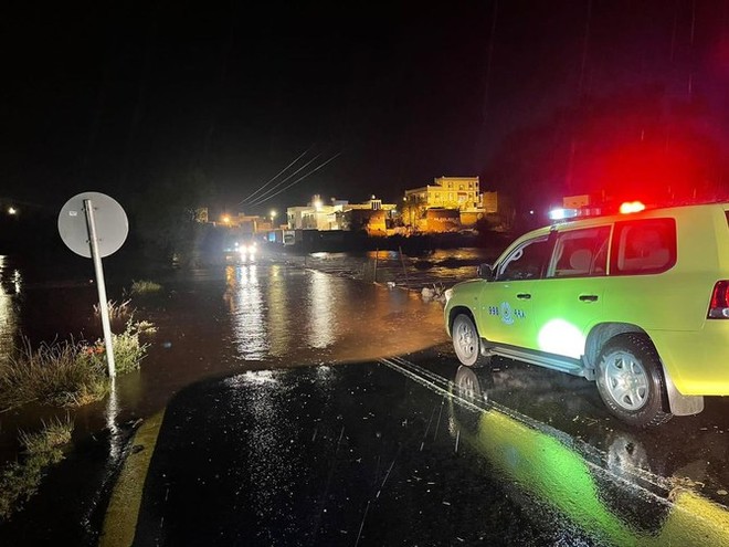 شہری دفاع نے سیلابی پانی کی گزرگاہوں سے دور رہنے کا مشورہ دیا ہے (فوٹو: عرب نیوز)