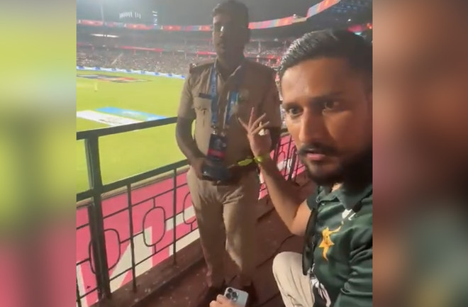 جمعے کو انڈیا کے شہر بنگلور میں پاکستان اور آسٹریلیا کے میچ کے دوران پاکستانی تماشائی کو انڈین پولیس اہلکار کی جانب سے ’پاکستان زندہ باد‘ کا نعراہ لگانے سے روک دیا گیا۔