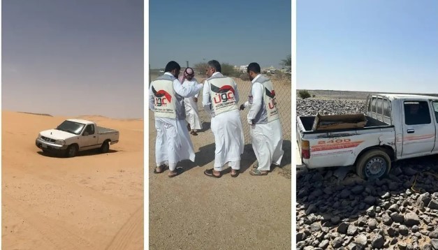 سعودی رضاکاروں کا ایک گروپ صحرا میں راستہ بھول جانے والوں اور موت و حیات کی کشمکش کے شکار افراد کو بچانے کی کوشش کررہا ہے۔