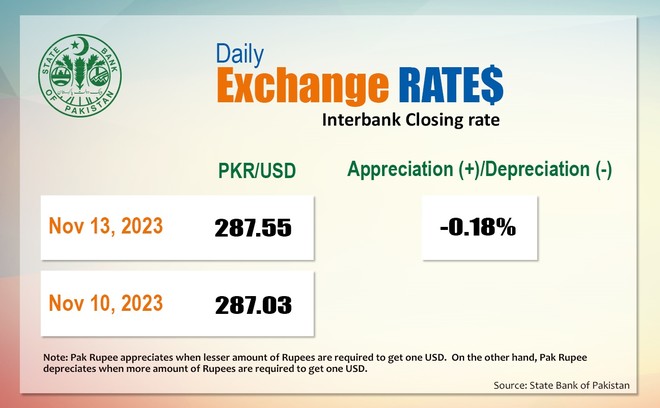 دوسری جانب اوپن مارکیٹ میں پیر کو امریکی ڈالر کی قیمت خرید 287 روپے اور قیمت فروخت 289 روپے 5 پیسہ ریکارڈ کی گئی۔