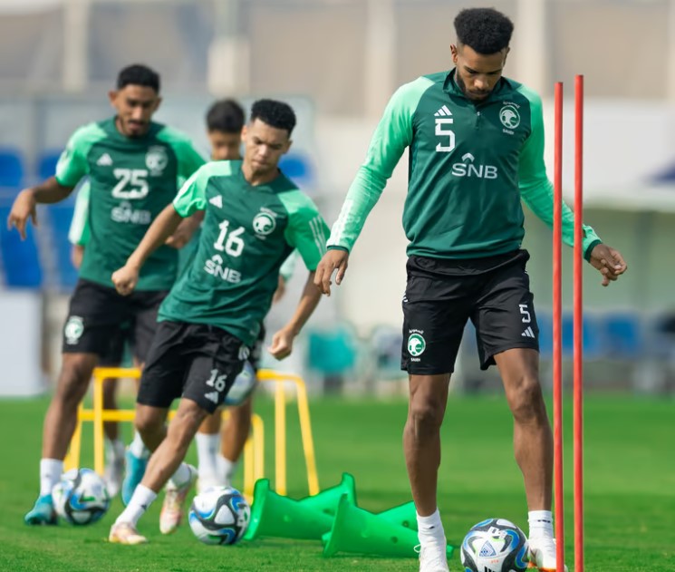 سعودی قومی ٹیم الاحسا کے ٹریننگ کیمپ میں میچ کی تیاریاں کررہی ہے۔ (فوٹو، سبق)