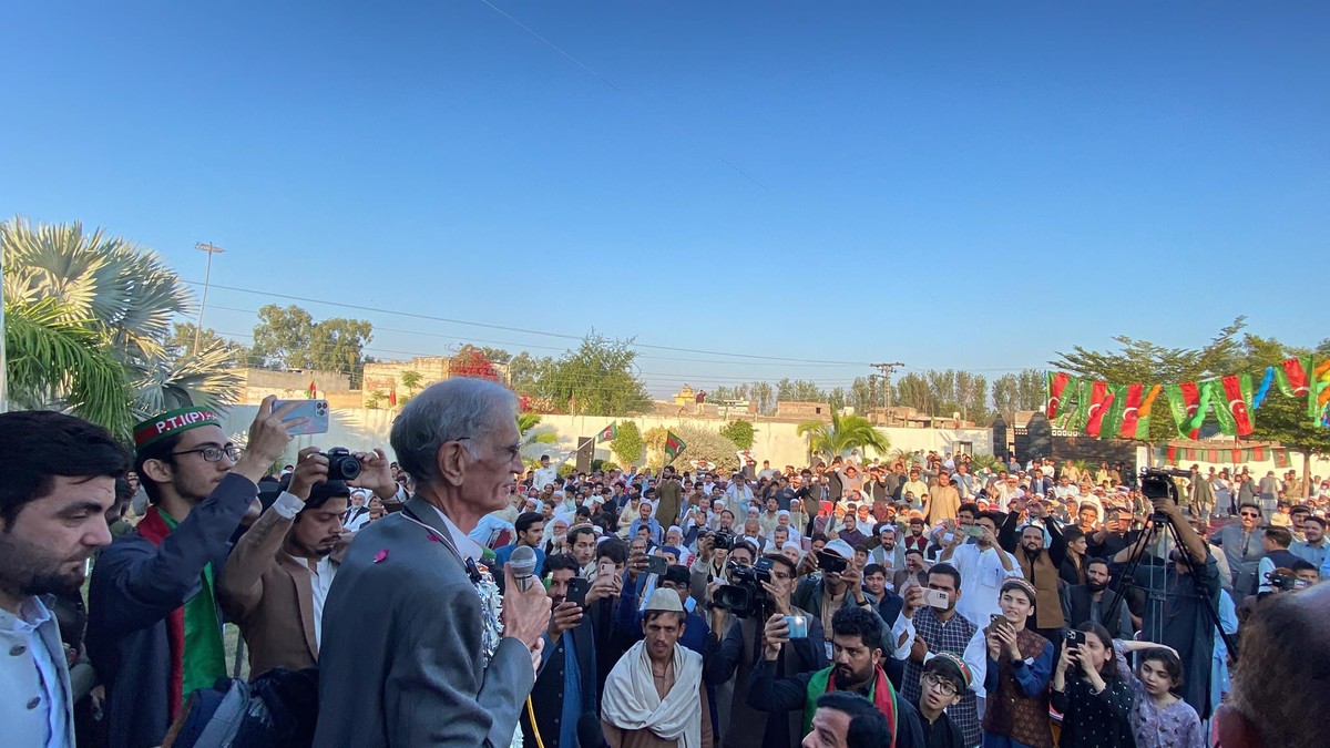 پرویز خٹک نے ضلع مردان کے جلسے میں عوام سے خطاب میں کہا تھا کہ ’میں ہر ضلع میں جا کر نامور سیاسی شخصیات کو اپنے ساتھ شامل کر رہا ہوں تاکہ الیکشن میں ہماری جماعت کامیاب ہو سکے۔‘