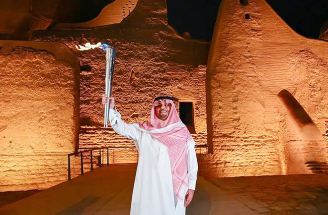 درعیہ کے کمشنر شہزادہ فہد بن ترکی نے سعودی گیمز2023 کی مشعل وصول کی۔