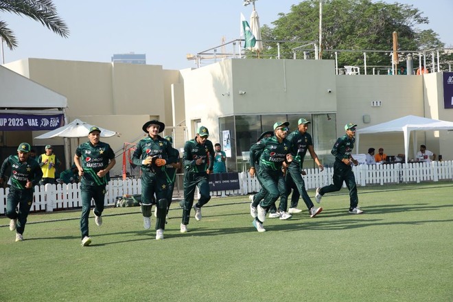 اس جیت کے بعد پاکستان گروپ اے میں چار پوائنٹس کے ساتھ پہلے نمبر ہر ہے۔ (فوٹو: پی سی بی)