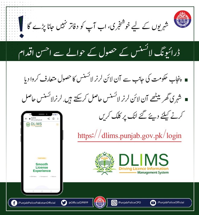 شہری گھر بیٹھے آن لائن لرنر لائسنس حاصل کرسکتے ہیں. لرنرلائسنس حاصل کرنے کیلئے دیئے گئے لنک پر کلک کریںhttps://t.co/nvPX8dhsTw#PunjabPolice #CMPunjabPK #IGPunjab #license #drivinglicense #learnerspermit #online #dlims… pic.twitter.com/LVrFmccUtE