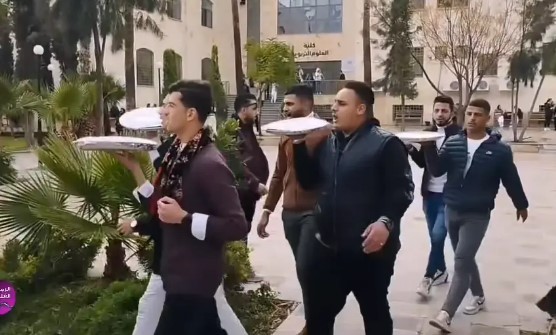 شمالی اردن کی اربد کمشنری کی یونیورسٹی کے گریجویٹ ہونے والے طلبہ نے تقریب کے انتظامات اس طرح کیے کہ 50 طلبہ پر مشتمل ایک گروپ ہاتھوں میں کبابوں کے تھال اٹھائے تقریب گاہ میں داخل ہوا۔