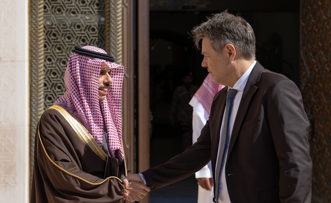 سعودی وزیر خارجہ شہزادہ فیصل بن فرحان نے بدھ کو ریاض میں جرمنی کے وائس چانسلر، وزیر اقتصادیات اور موسمیاتی تحفظ رابرٹ ہایبک کا خیرمقدم کیا ہے۔