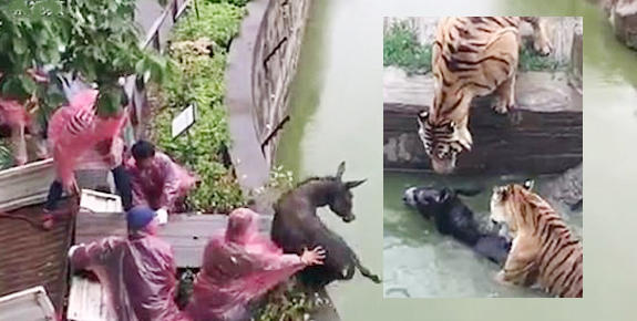جوانگژو ..... مقامی چڑیا گھر میں ایک انتہائی ہولناک واقعہ اس وقت پیش آیا جب ایک خچر کسی بات پر خوفزدہ ہو کر شیروں کے حصہ میں داخل ہو گیا جہاں بھوکے شیروں نے اسے بڑی بے دردی سے حملہ کر کے ہلاک کر دیا۔اس موقع کی جو وڈیو جاری ہوئی ہے اس سے پتہ چلتا ہے کہ 2شیر خچر کو بھنبھوڑ بھنبھوڑ کر کاٹ رہے تھے اور کھا رہے تھے۔واقعہ اتنا اچانک اور ہولناک طریقے سے ہوا کہ لوگ سناٹے میں آگئے اور خچر کی کوئی مدد ممکن نہیں ہو سکی ۔ ایسے واقعات حادثات کہلاتے ہیں مگر یہ واقعہ اس اعتبار سے بہت عجیب و غریب ہے کہ اس میں چڑیا گھر کے نگراں افراد بھی ملوث ہیں جنہوں نے بھوکے شیروں کا پیٹ بھرنے کےلئے خچر کو ان کا نوالہ بنایا اور انکی طرف دھکیل دیا تھا۔کہا جاتا ہے کہ شیروں کے جس علاقے میں خچر گرا وہاں ایک چھوٹا سا تالاب بھی تھا جو شیروں کے پانی پینے کیلئے بنایا گیا تھااور اس پانی سے خچر کا نکل بھاگنا کسی صورت بھی ممکن نہیں ہو سکا۔یعنی جانوروں کی اس سفاکی میں انسان بھی برابر کا شریک قرار دیاجا سکتا ہے ۔ وڈیو دیکھنے سے پتہ چلتا ہے کہ شیروں نے پہلے خچر کی گردن دبوچی اور اس کا خون پینے کے بعد اس کو چیڑپھاڑ کر کھا گئے ۔ خفیہ کیمرے میں اس واقعہ کی تصویر محفوظ ہو گئی ہے اور اسے دیکھ کر پتہ چلتا ہے کہ یہ سارا کام صرف آدھے گھنٹے میں مکمل ہو گیا۔