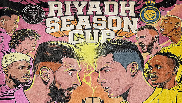 آج رات ٹھیک 9 بجے دنیا کی نظریں سعودی دار الحکومت ریاض کی طرف مرکوز ہوں گی جہاں کنگڈم ارینا سٹیڈیم میں رونالڈو کی قیادت میں النصر فٹبال کلب اور میسی کی قیادت میں انٹرمیامی کا مقابلہ ہوگا۔