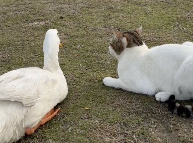 کوئی تین دن پہلے لوگوں نے اس بات کو نوٹ کیا کہ ایک بطخ اور بلی کی آنکھ مچولی چل رہی ہے۔