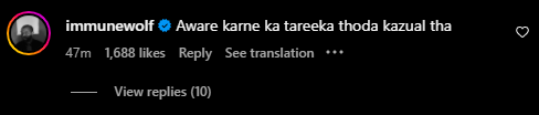 امیون وولف نے کمنٹ کیا ’آگاہی پھیلانے کا طریقہ تھوڑا کیزؤل ہے۔‘