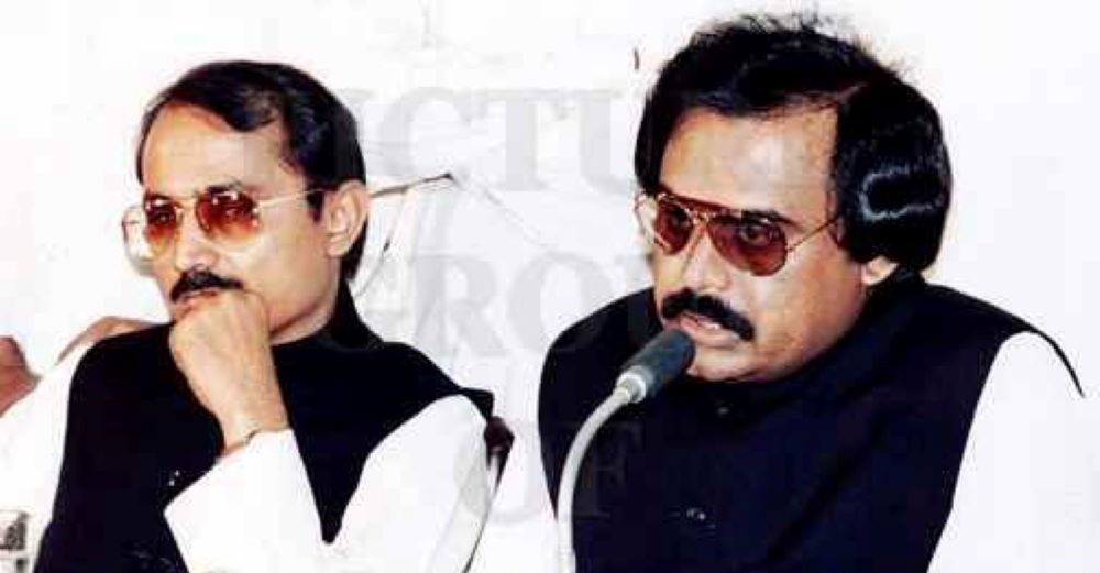 خالد مقبول صدیقی سے قبل صرف ایم کیو ایم کے بانی ارکان میں شامل عظیم احمد طارق (بائیں) ہی پارٹی چیئرمین رہے ہیں۔ (فوٹو: حق پرست ایم کیو ایم ایکس)