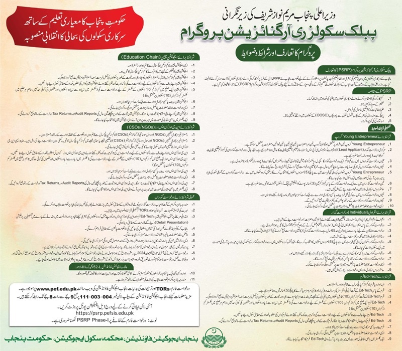 صوبائی حکومت کی جانب سے پبلک سکولز ری آرگنائزنگ پروگرام کے لیے جاری کیا گیا اشتہار (فائل فوٹو: حکومت پبجاب)
