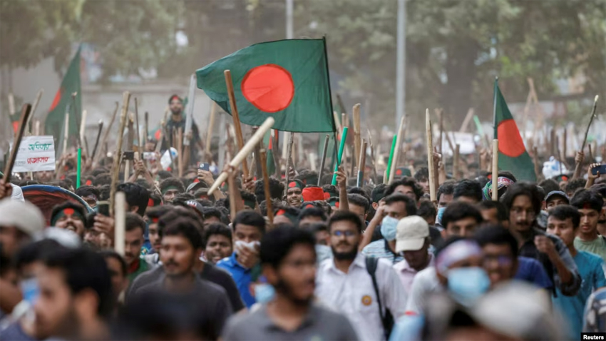 طلباء حکومت کے کوٹہ سسٹم کے خلاف جولائی کے اوائل سے کیمپس میں مظاہرہ کر رہے ہیں۔