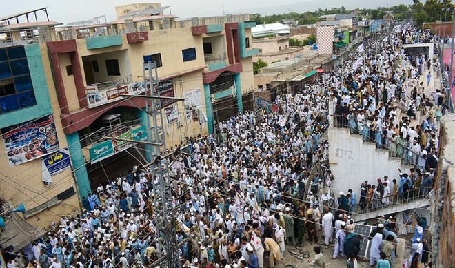 بنوں میں جاری دھرنا امن پاسون کی طرف سے دیا گیا ہے۔ (فوٹو: اے ایف پی)