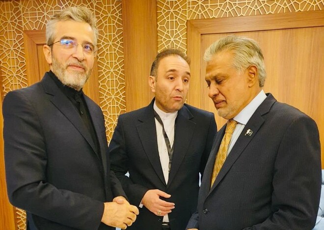 پاکستان کے ڈپٹی وزیر اعظم اور وزیرخارجہ اسحاق ڈار نے بدھ کو جدہ میں اوآئی سی کی ایگزیکٹیو کمیٹی کے غیر معمولی اجلاس کے موقع پر ایران کے قائم مقام وزیر خارجہ باقری کانی سے ملاقات کی ہے۔