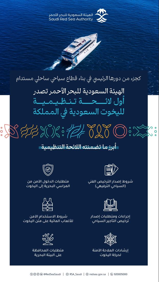 سعودی بحیرہ احمر اتھارٹی (ایس آر ایس اے) نے مخصوص جغرافیائی دائرہ کار کے اندر’سعودی یاٹس، مملکت کا پہلا ضابطہ متعارف کرایا ہے۔