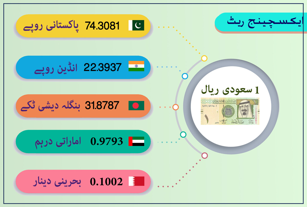 سعودی عرب کے مختلف ٹرانزیکشن سنٹرز کے مطابق منگل 10 ستمبر 2024 کو سعودی ریال کا ایکسچینج ریٹ ذیل میں درج کیا گیا ہے۔