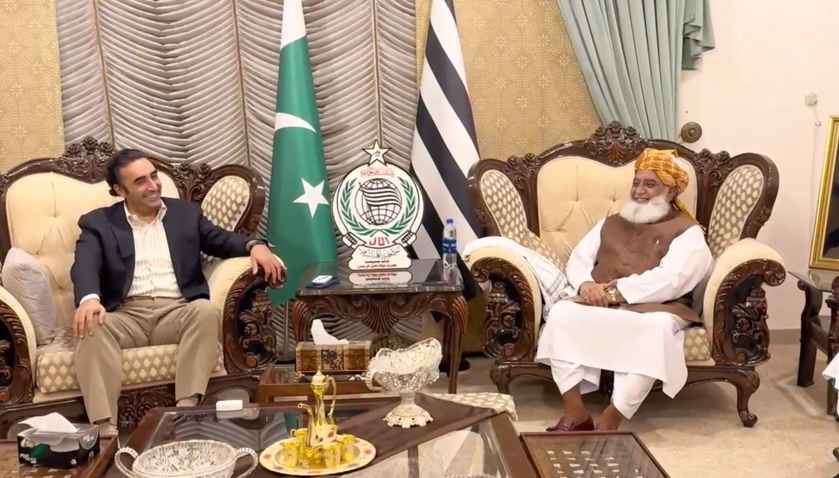 بلاول بھٹو نے کہا کہ ’مولانا فضل الرحمن کے ساتھ سیاسی اختلاف ہو سکتا ہے کہ لیکن ہم تین نسلوں سے ایک دوسرے کو جانتے ہیں۔‘ (فوٹو: سکرین گریب)