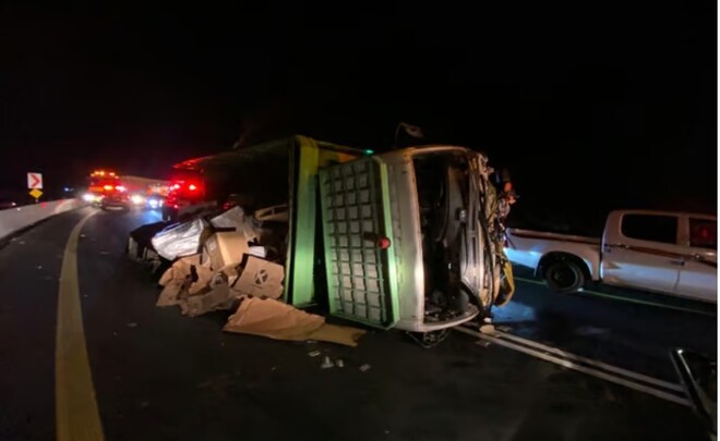 جمعے کی شب شاہرہ پر تین گاڑیاں آپس میں ٹکرا گئیں۔ ( فوٹو: سبق)