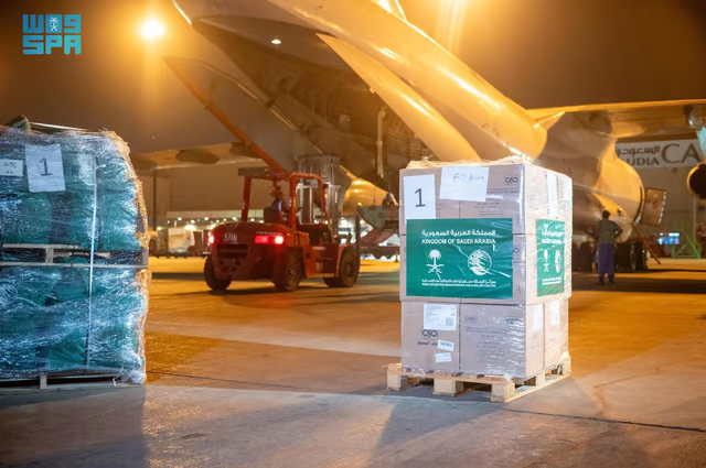 أكثر من 40 طنًا من المساعدات السعودية الطبية والإغاثية والإيوائية لإغاثة الشعب اللبناني في أولى رحلات الجسر الجوي الإغاثي