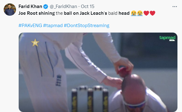 فرید خان نے لکھا ’جو روٹ بال چمکانے کے لیے جیک لیچ کے گنجے سر کا استعمال کر رہے ہیں۔‘