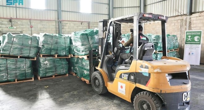غزہ پٹی کے متاثرین کے لیے شاہ سلمان مرکز کی جانب سے بری راستے سے 30 ٹرالرز بھیجے گئے جن میں بنیادی صروریات کے سامان کو پیکٹوں کی صورت میں محفوط کیا گیا ہے۔