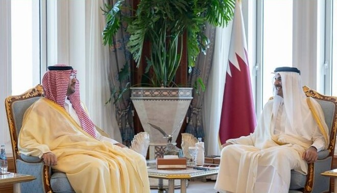 قطری نیوز ایجنسی قنا کے مطابق ملاقات کے دوران سعودی وزیر نے امیر قطر کو سعودی قیادت کی جانب سے تہنیتی پیغام دیا۔