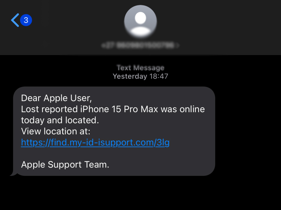 یہ میسجز بظاہر ایپل سپورٹ کے نام سے آتے ہیں اور ان میں آپ کو بتایا جاتا ہے کہ آپ کا فون اس لوکیشن پر موجود ہے اس کو تلاش کرنے کے لیے لنک پر کلک کریں۔