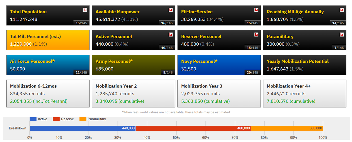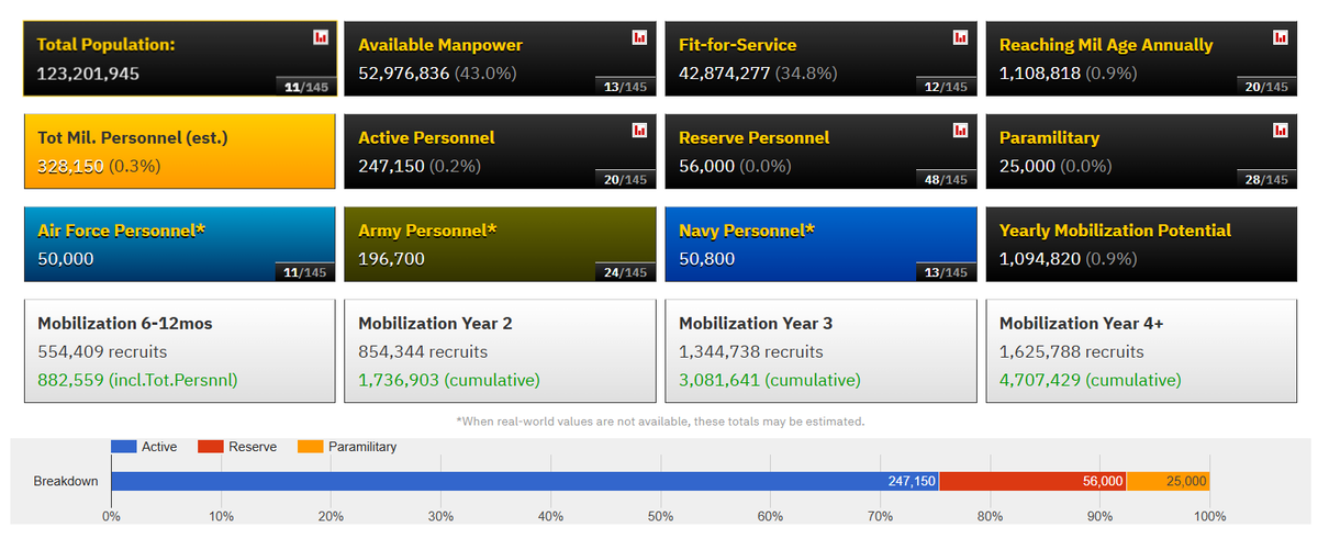 جاپان کی کُل ملٹری مین پاور۔