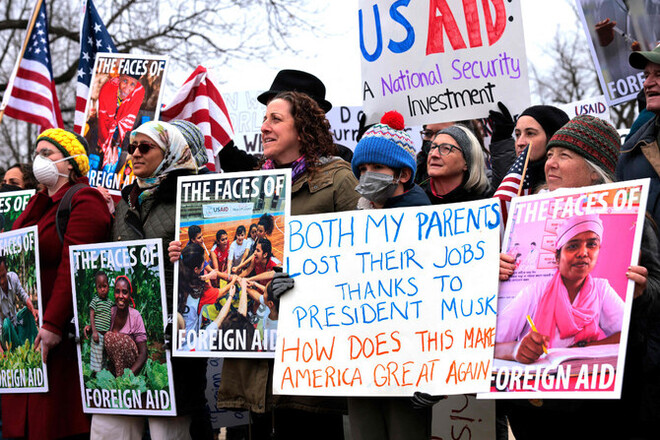 دارالحکومت واشنگٹن میں، ڈیموکریٹک قانون سازوں اور سینکڑوں دیگر افراد نے کیپیٹل ہل کے باہر امریکی امدادی ادارے یو ایس ایڈ کو بند کرنے کے احکامات کے خلاف احتجاج کیا۔