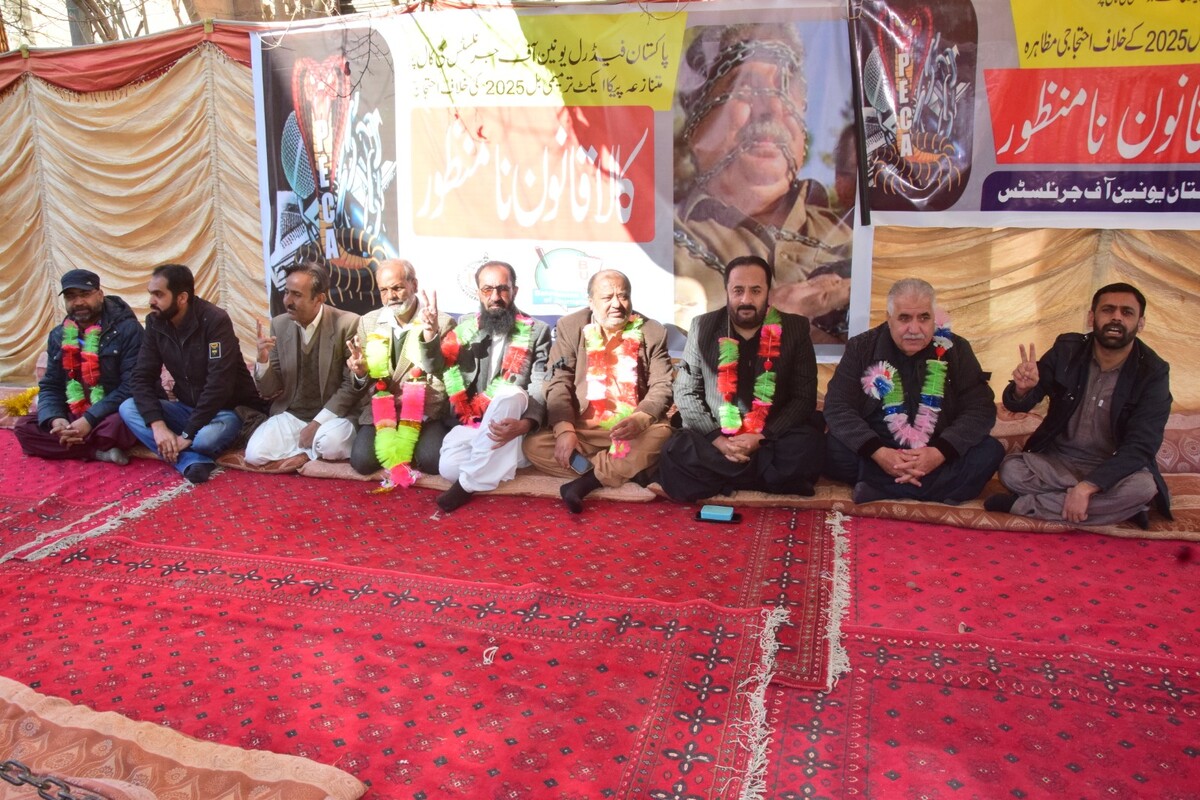 بلوچستان یونین آف جرنلسٹس (بی یو جے) نے پیکا ایکٹ کے خلاف کوئٹہ میں پریس کلب کے باہر علامتی بھوک ہڑتالی کیمپ قائم کر دیا ہے۔