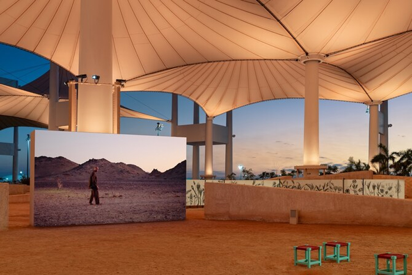 پینٹنگز، انسٹالیشنز اور ویڈیو آرٹ پر مشتمل یہ نمائش صحرا اور ثقافتی روایات کے دو اہم موضوعات کے گرد گھومتی ہے۔