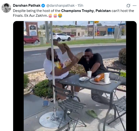 ایک صارف نے لکھا ’کرکٹ کی تاریخی میں پہلی بار ہوگا کہ میزبان ملک فائنل کی میزبانی نہیں کرے گا۔ پاکستان نے چیمپئنز ٹرافی کے لیے سٹیڈیمز پر 1280 کروڑ خرچ کیے، پاکستان کی اپنی ٹیم 5 دن بعد ٹورنامنٹ سے باہر ہوئی، ایک میچ بھی نہ جیت سکے اور اب فائنل دبئی میں ہو رہا ہے۔‘