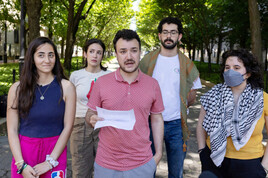 امیگریشن اہلکار جمعے اور سنیچر کی درمیانی شب کولمبیا کیمپس کے قریب واقع محمود خلیل کے اپارٹمنٹ کی لابی میں انہیں بتاتے ہیں کہ وہ گرفتار ہونے والے ہیں۔