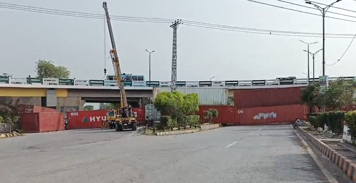 اراولپنڈی کو اسلام آباد سے ملانے والے فیض آباد انٹرچینج کو بھی کینٹینرز لگا کر بند کر دیا گیا تھا۔