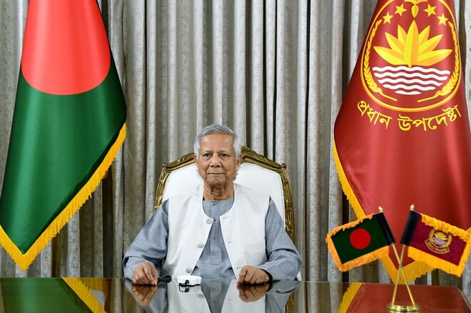 ڈاکٹر یونس انتخابات تک نگراں حکومت کے چیف ایڈوائزر کے طور پر قیادت کر رہے ہیں (فوٹو: اے ایس پی)