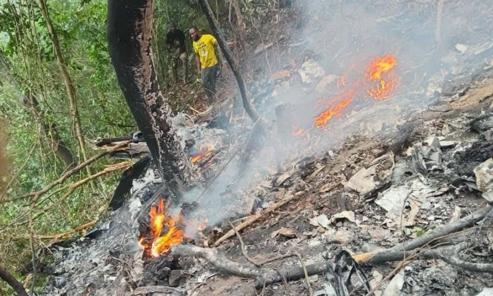 ہیلی کاپٹر میں وزیر دفاع ایڈورڈ اومانے بوماہ اور وزیر ماحولیات ابراہیم مرتاتا محمد کے علاوہ چھ دیگر افراد بھی سوار تھے (فوتو: اے پی)