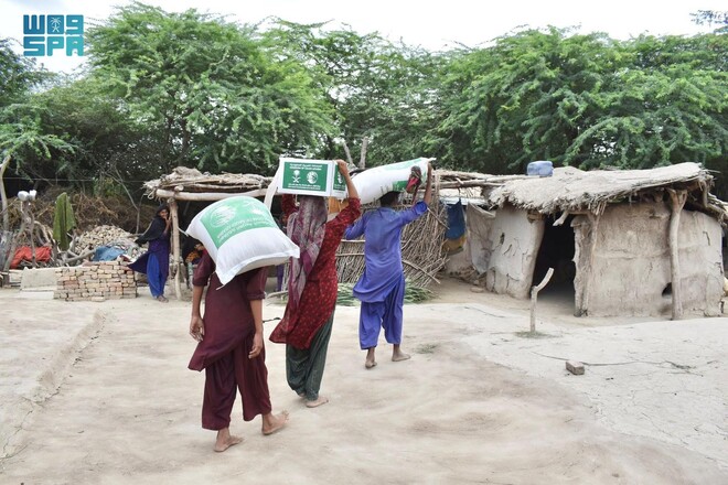 شاہ سلمان مرکز برائے امداد و انسانی خدمات نے گزشتہ دنوں پاکستان کے سیلاب سے متاثرہ علاقوں میں امدادی پروگرام کے تحت فوڈ باسکٹس تقسیم کیں۔