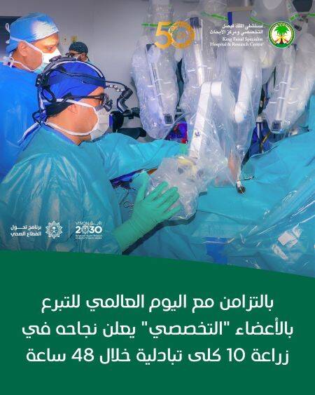 سعودی عرب کے کنگ فیصل سپیشلسٹ ہسپتال اینڈ ریسرچ سینٹر نے رواں ہفتے صرف 48 گھنٹے میں گردے کے 10 ٹرانسپلانٹ کر کے ایک عالمی ریکارڈ قائم کر دیا۔