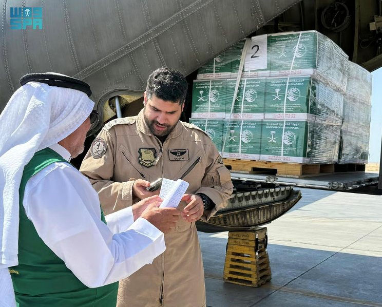سعودی عرب کا 59 واں طیارہ غزہ کے لیے امدادی سامان لے کر مصری کے العریشن ایئرپورٹ پہنچا ہے۔