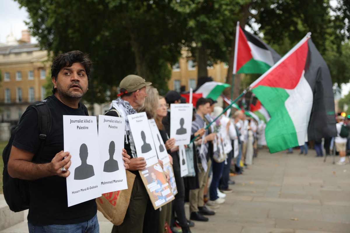 فرانسیسی خبر رساں ادارے اے ایف پی کے مطابق برطانیہ کی نیشنل یونین آف جرنلسٹسکے ارکان نے وزیرِاعظم کئیر سٹارمر کی رہائش اور دفتر ڈاؤننگ اسٹریٹ کے باہر احتجاج کیا۔ انہوں نے حکومت سے مطالبہ کیا کہ میڈیا ورکرز کے تحفظ کے لیے مؤثر اقدامات کیے جائیں اور ان حملوں کے ذمہ داروں کو جوابدہ ٹھہرایا جائے۔