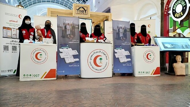 سعودی ہلال الاحمر اتھارٹی کی جانب سے فرسٹ ایڈ کے عالمی دن کی مناسبت سے طائف شہر میں لوگوں کو ہنگامی طبی امداد کی آگاہی فراہم کرنے کے لیے کیمپس لگائے گئے۔