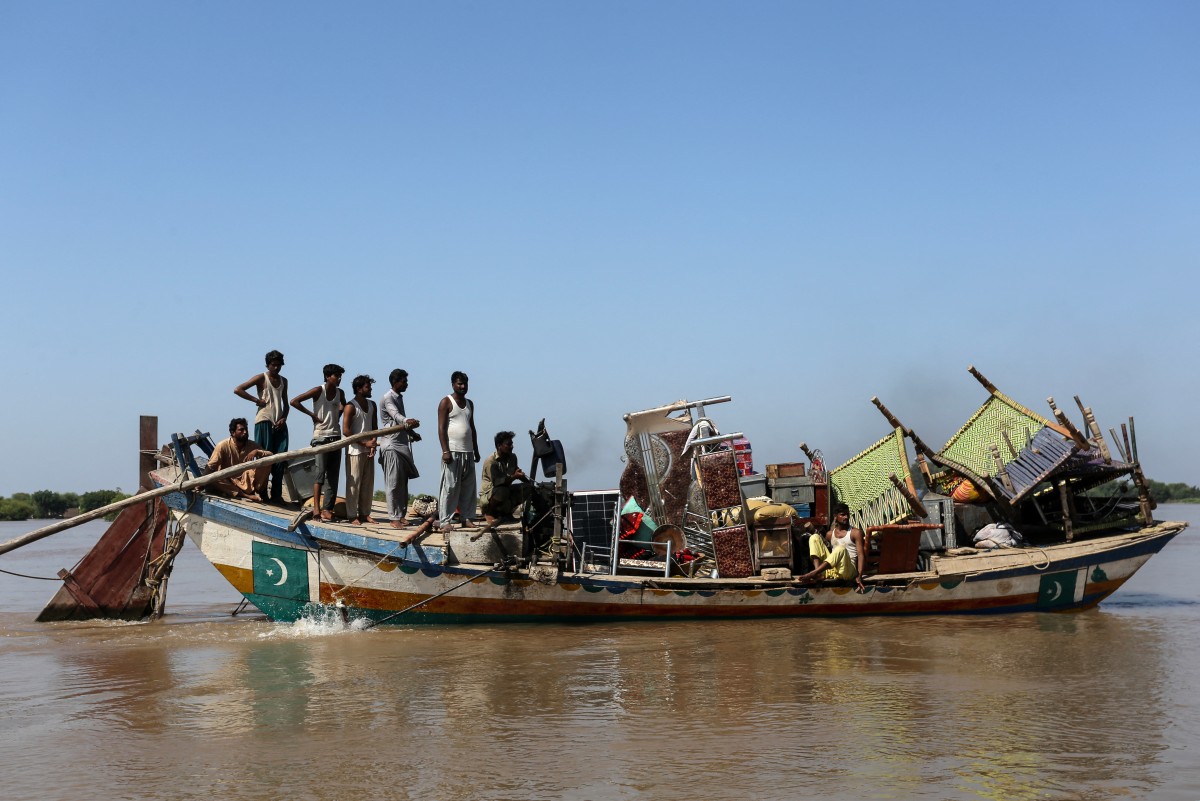 سیلاب سے متاثرہ بعض علاقوں سے لوگوں نے نقل مکانی کی۔ (فوٹو: اے ایف پی)