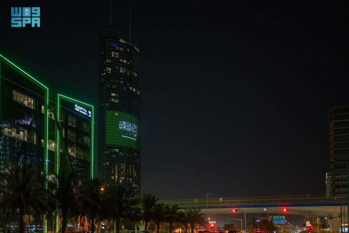 سبق ویب سائٹ کے مطابق بدھ کی شب دارلحکومت ریاض سمیت مختلف شہروں کے بلند و بالا ٹاورز اور تاریخی مقامات پر سبز و سفید روشنیوں نے سماں باندھ دیا، جو عوامی سطح پر بھی خوشی اور جوش و خروش کا اظہار تھا۔