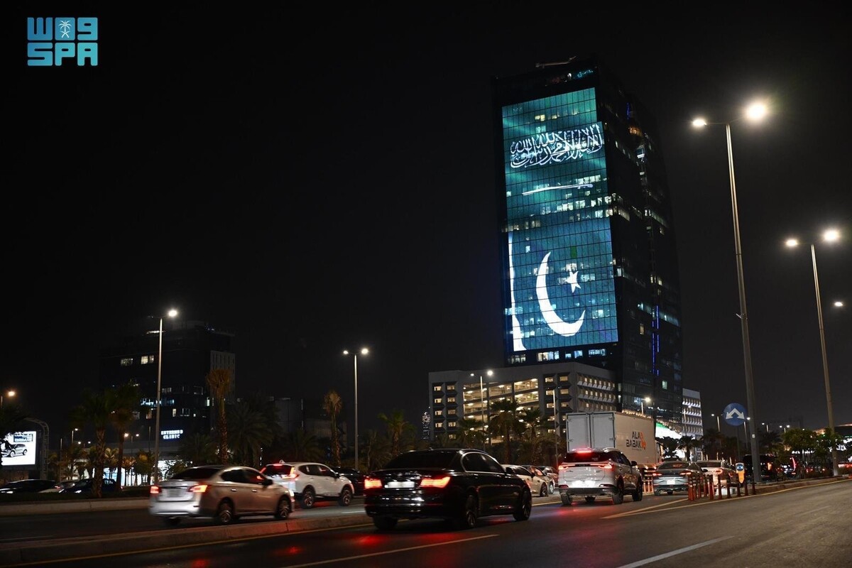 سعودی عرب کے بڑے شہروں کی نمایاں عمارتیں اور اہم مقامات سعودی عرب اور پاکستان کے پرچموں کی روشنیوں سے جگمگا اٹھے۔