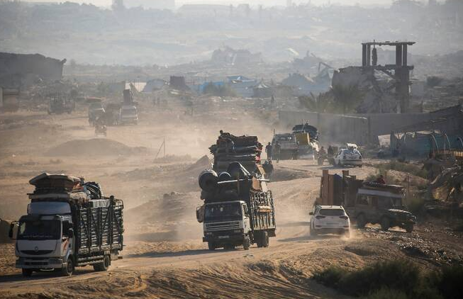 جمعرات کو الرشید کوسٹل روڈ سے اے ایف پی کی فوٹیج میں فلسطینیوں کی لمبی قطاریں دکھائی دے رہی تھیں جو پیدل یا گاڑیوں پر سامان کے ڈھیر لادے جنوب کی طرف جا رہے تھے۔