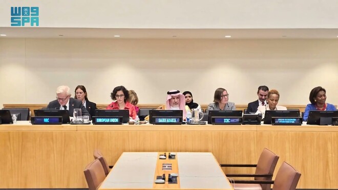 سعودی نیوز ایجنسی ’ایس پی اے‘ کے مطابق نیویارک میں اقوام متحدہ کی جنرل اسمبلی کے 80 ویں اجلاس کے موقع پر یورپی یونین کے تعاون سے ’مشرق وسطی میں بحرانوں سے اجتماعی طور پر نمٹنے کے لیے،انسانی سفارت کاری پرعمل درآمد’ کے عنوان سے اعلی سطح کا اجلاس ہوا ہے۔