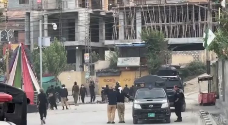 منگل کو مظفرآباد شہر میں پولیس اور مظاہرین کے درمیان وقفوں وقفوں سے جھڑپیں بھی ہوئیں (فوٹو: سکرین گریب)