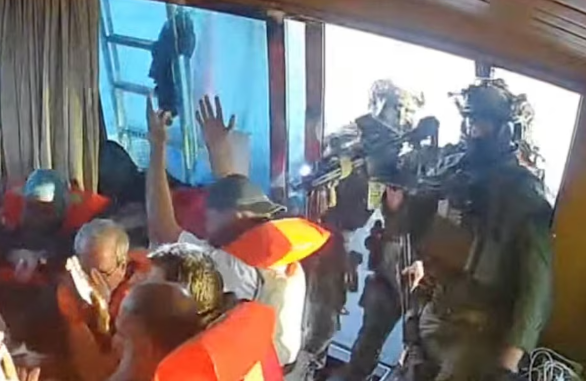 خبر رساں ایجنسی روئٹرز کے مطابق کشتیوں سے لائیو فیڈ نشر کرنے والے کیمروں میں اسرائیلی فوجیوں کو ہیلمٹ اور نائٹ ویژن چشمے لگائے جہاز پر سوار ہوتے دکھایا گیا جبکہ مسافر ہاتھ اٹھائے لائف جیکٹیں پہنے اکٹھے بیٹھے تھے۔